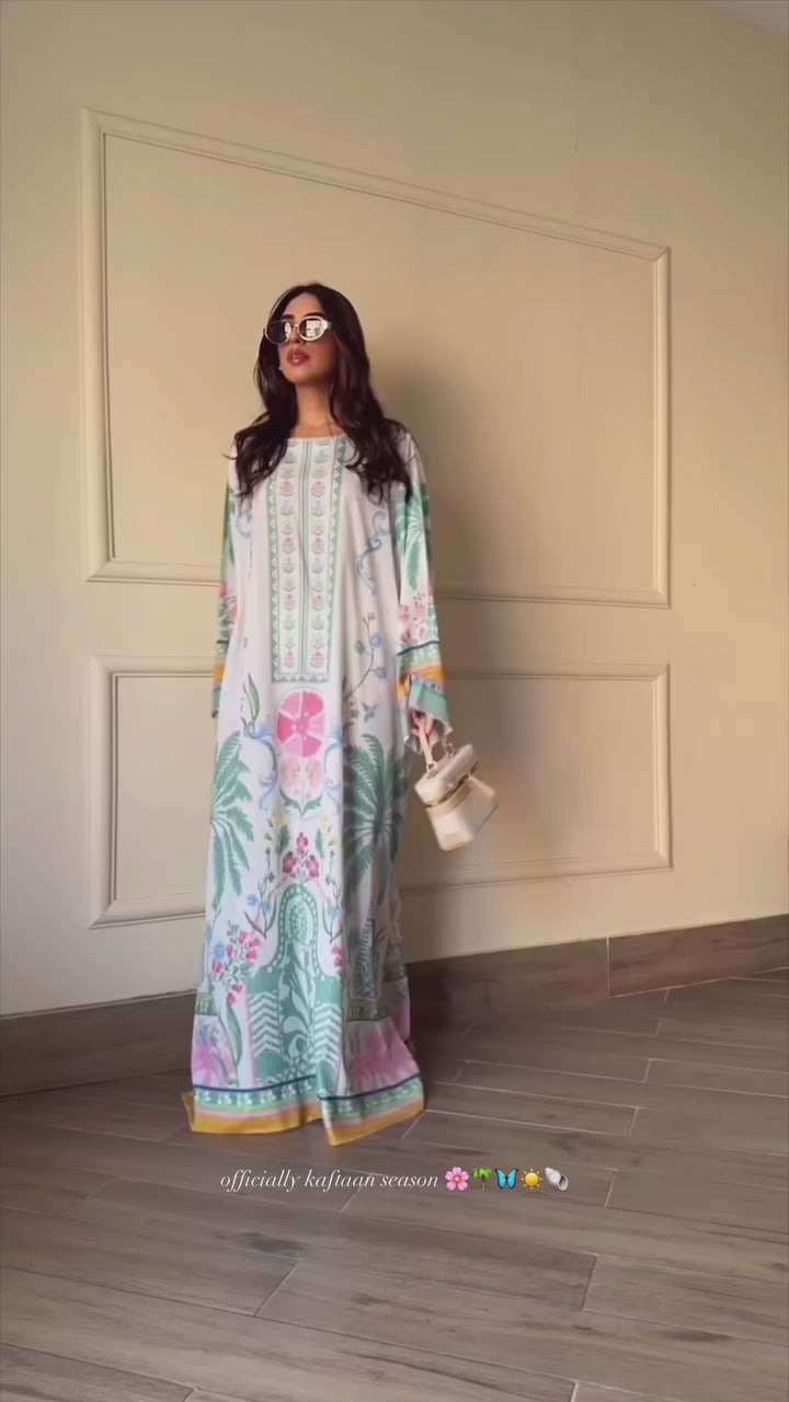 Step Into Effortless Elegance With This Chic Printed Kaftan, Designed On A Soft White Base Accented With Refreshing Hues Of Green, Pink, And Blue. Featuring Flowing Sleeves, A Relaxed Silhouette,...