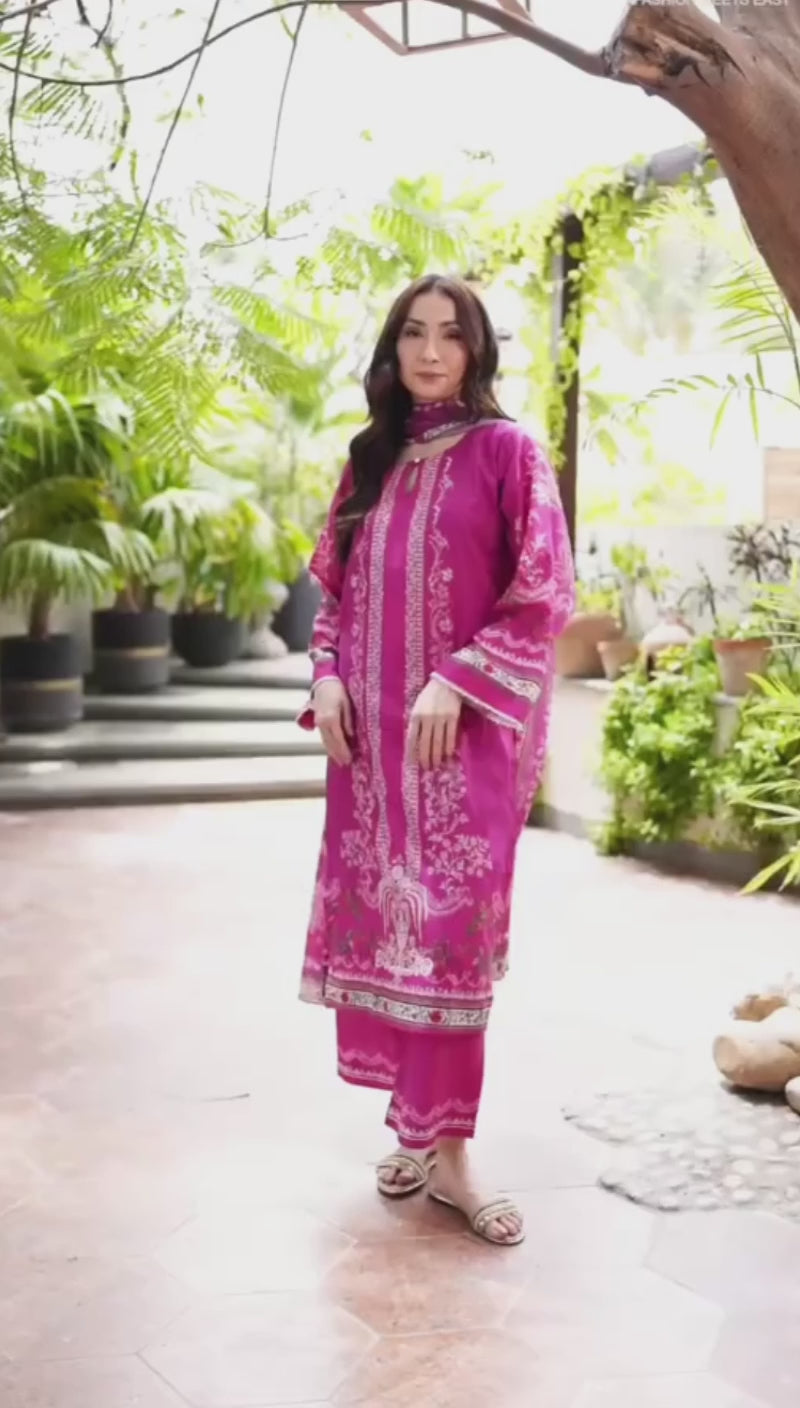 This Stunning Outfit Features A Straight-Cut Printed Kurta Adorned With Intricate Floral And Geometric Designs. The Set Includes Coordinating Trousers And A Flowing Dupatta, All In A Vibrant Magenta Hue....