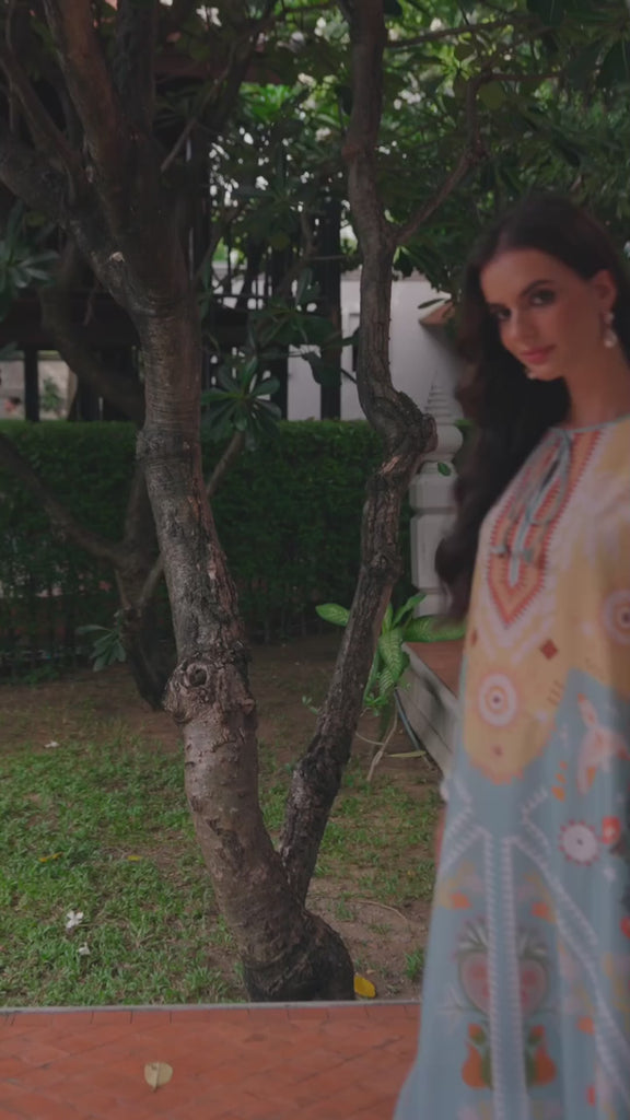 Experience Timeless Grace In This Kurta Set. It Features A Light, Flowing Kurta Adorned With Intricate Floral And Geometric Prints In Soft Pastel Shades Of Blue And Cream. Paired With Matching Cropped Trousers, This Outfit Is The Perfect Blend Of Traditional Elegance And Contemporary Comfort, Ideal For Any Casual Or Semi-Formal Outing