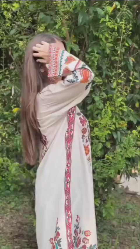 Effortless Elegance Awaits With This Stunning Cord Set. Featuring A Beautifully Embroidered Tunic That Showcases Vibrant, Folk-Inspired Patterns On The Yoke And Sleeves, It’s Perfectly Paired With Matching Pants That Boast A Bold, Contrasting Geometric Print. Crafted From A Soft, Breathable Fabric