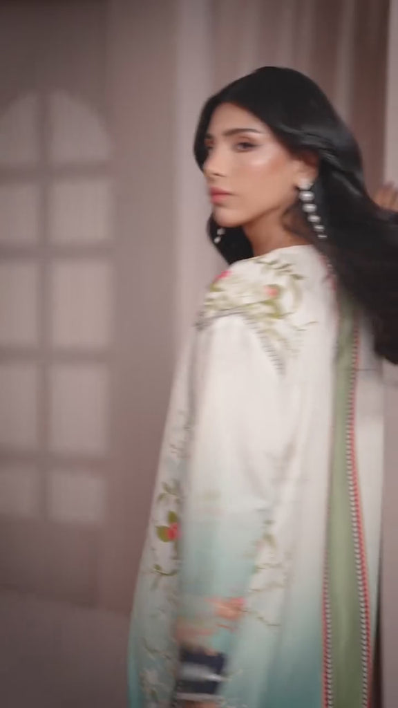 Elevate Your Style With This Exquisite Pastel Kurta Set That Features A Dreamy Blend Of Aqua And Ivory Hues, Adorned With Vibrant Floral Prints And Elegant Embellishments. The Straight-Cut Silhouette, Detailed With A Statement Neckline And Contrasting Borders, Offers A Perfect Balance Of Tradition And Contemporary Flair