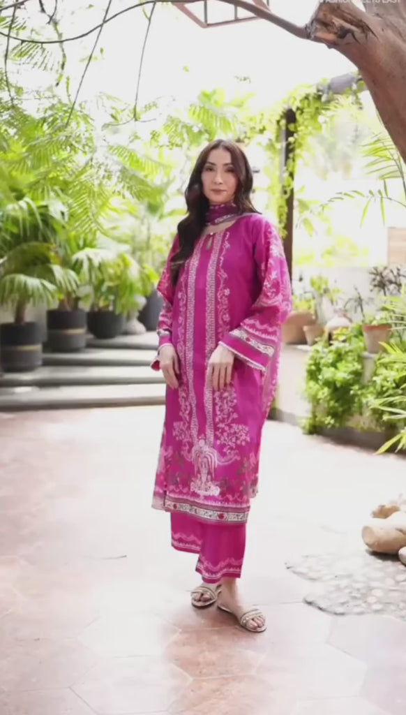 This Stunning Outfit Features A Straight-Cut Printed Kurta Adorned With Intricate Floral And Geometric Designs. The Set Includes Coordinating Trousers And A Flowing Dupatta, All In A Vibrant Magenta Hue. Crafted From A Comfortable Fabric, This Suit Is A Chic And Elegant Choice For Any Daytime Or Semi-Formal Event.
